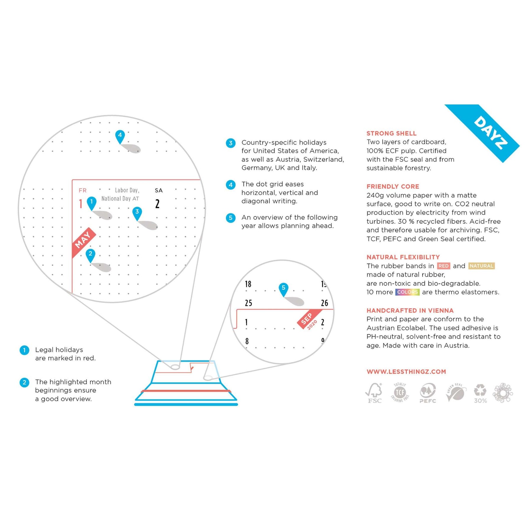 Mit dem DAYZ landscape Weekly Planner beginnt dein Jahr so organisiert und inspirierend wie nie. Dieses durchdachte Planungswerkzeug begleitet dich 18 Monate lang – vom Kalenderjahr 2026 bis zur Mitte von 2027 – und gibt dir Raum für deine Ideen, Ziele und Termine. Das horizontale Wochenlayout lädt dazu ein, Pläne klar zu strukturieren und den Überblick stets zu behalten, egal ob unterwegs oder am Schreibtisch.