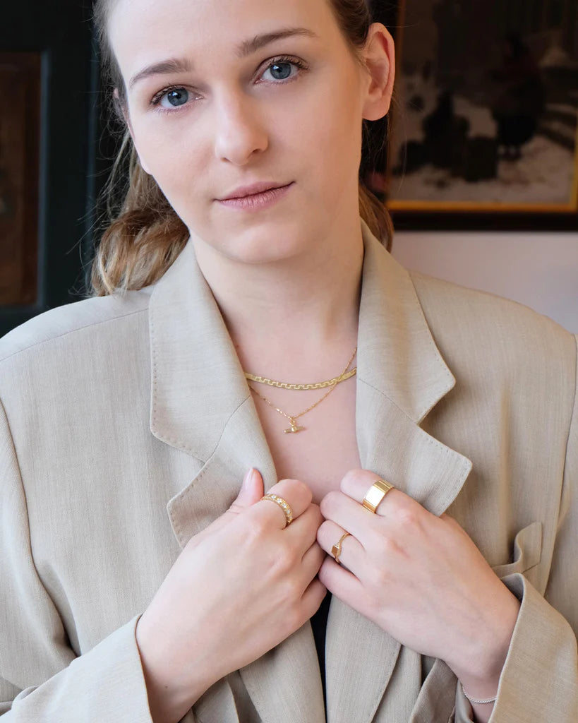 Nach meiner Ausbildung zur Schmuckdesignerin an der Golschmiedeschule Pforzheim und dem Designstudium in Düsseldorf arbeite ich jetzt an meinem eigenen Label in Berlin. Meine Schmuckstücke sprechen die moderne und starke Frau an, die in jeder Lebenssituation Eleganz und Ausstrahlung behält.