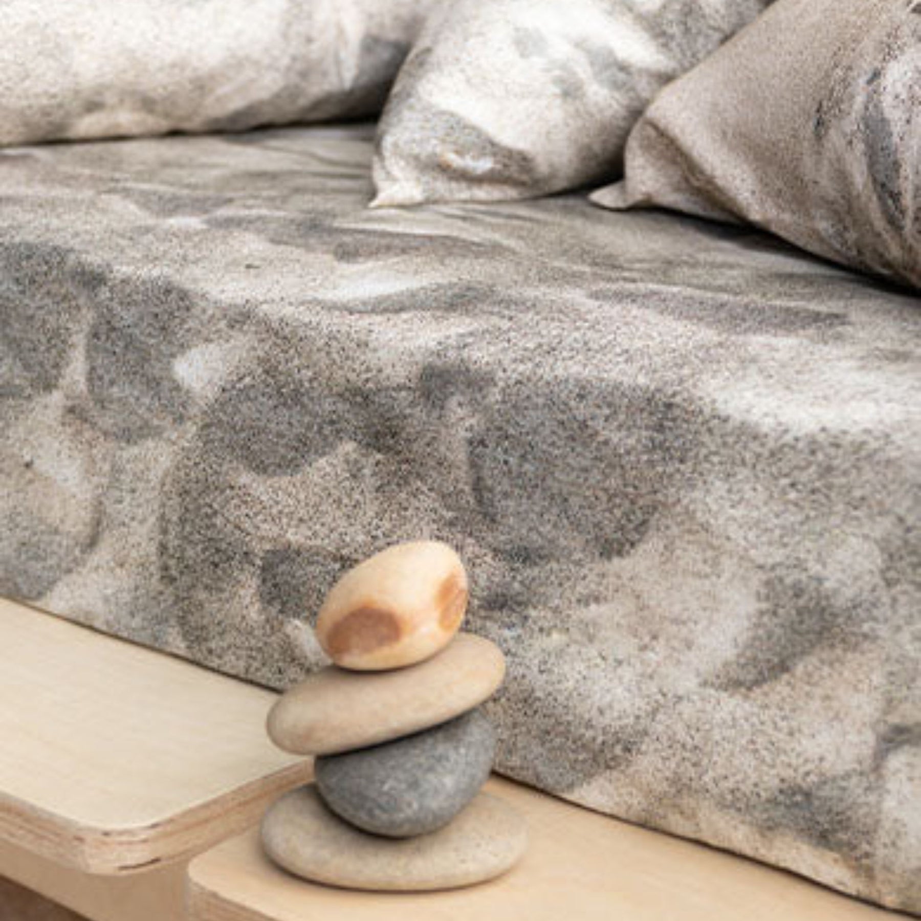 In der Sonne am Strand entspannt die Augen zu machen – das ist die Definition von Urlaub! Der weiche warme Sand im Rücken wiegt uns sofort in die Welt der Träume. Wenn du dieses wohlige Gefühl auch zuhause erleben möchtest, dann bist du bei Foonka genau richtig. Das Spannbettlaken STRAND bringt den warmen Sand in dein Schlafzimmer und sorgt für Urlaubsgefühl das ganze Jahr über. Das hochwertige Stricklaken mit Stranddruck ist angenehm weich und passt sich ideal deiner Matratze an.