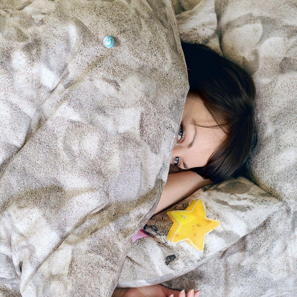 Nach Stroh, Heu und Moos ist es Zeit für Seaside Erinnerungen. Wir haben für Dich eine Bettwäsche, die Dich zu einem sandigen Ostseestrand bringt! Wir haben uns in sandblauen Buntstiften verloren, ohne die wir unsere Zeichnung von Seeweben nicht beenden können. Eine Frau auf dem nächsten Handtuch sucht schon seit einer Stunde nach ihrem Ehering. Es gab auch einige Seashells, aber wir sammelten alle von ihnen ... aber es gibt noch viele andere Sachen im Sand, die du finden kannst.