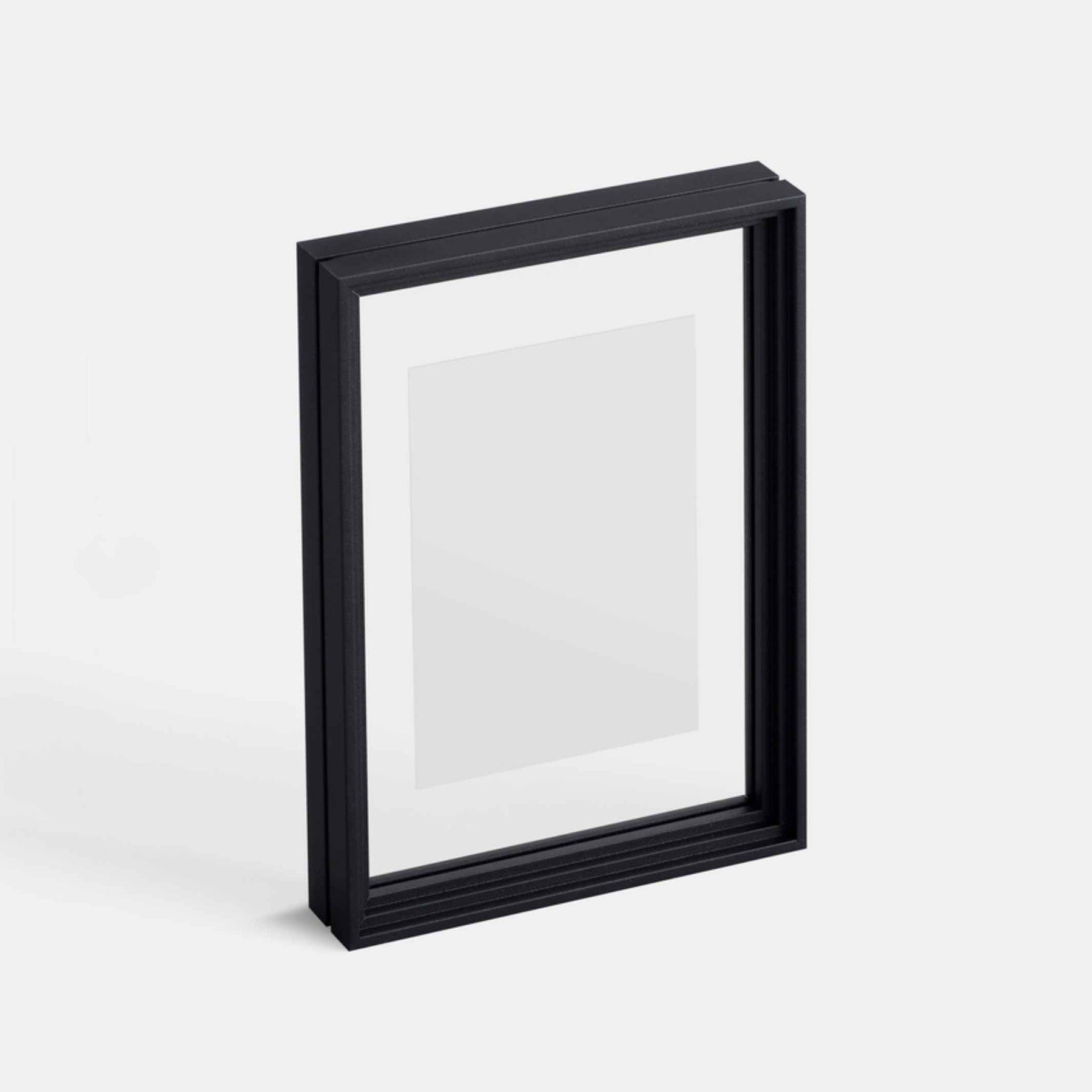 Standing Frame besteht aus zwei Teilen Acrylglas, vier Seiten und einem Gummiband. Fotos, Blumen oder Drucke können zwischen dem transparenten Glas aufgehängt werden oder den gesamten Rahmen ausfüllen. Das bleibt ganz dir überlassen.