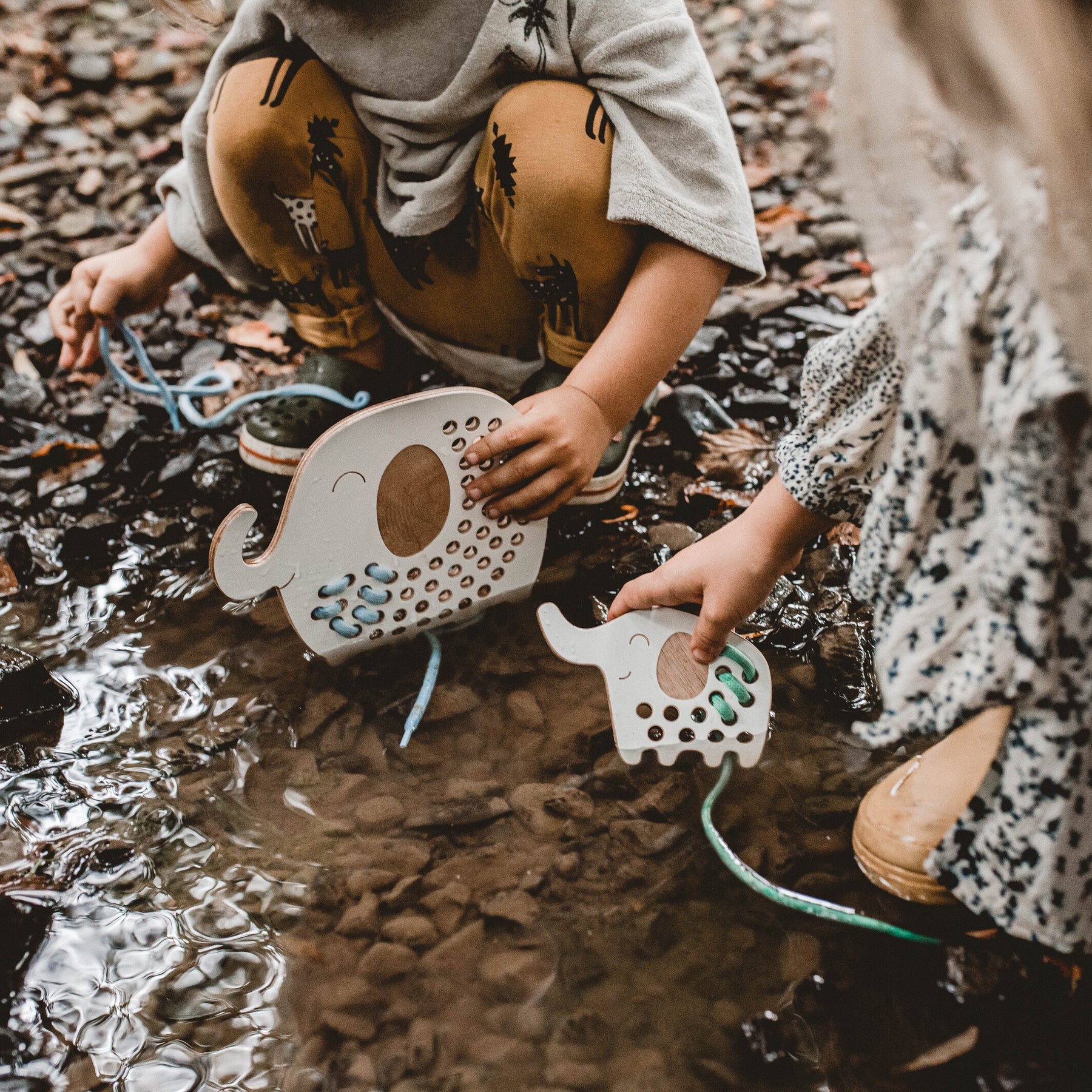Oliver der Elefant – Hölzernes Montessori-Schnürspielzeug für Kinder