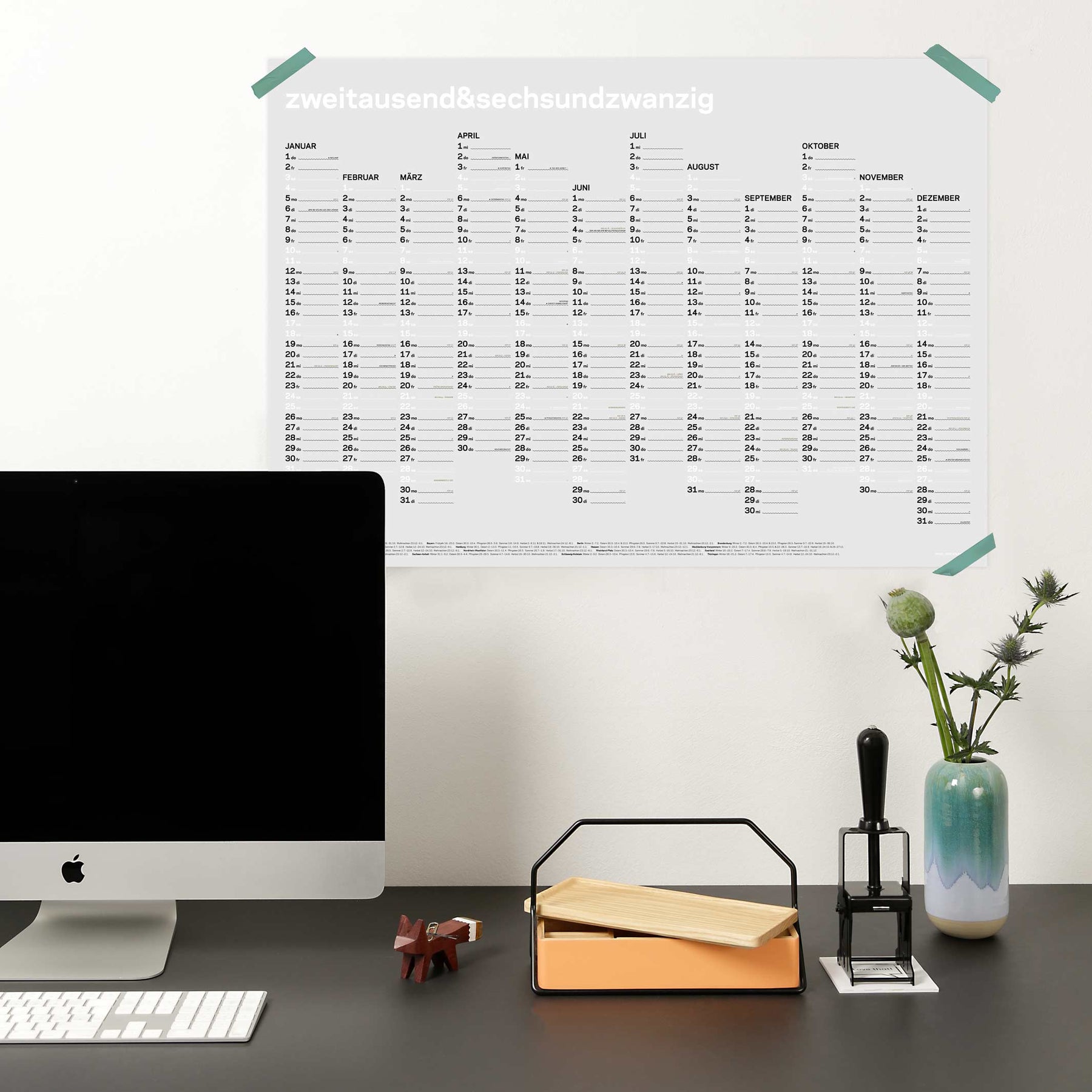 Das Format des Kalenders ist DIN A1 – 84,1×59,4 cm. Der Kalender kommt gerollt in einer schicken schwarzen Röhre.