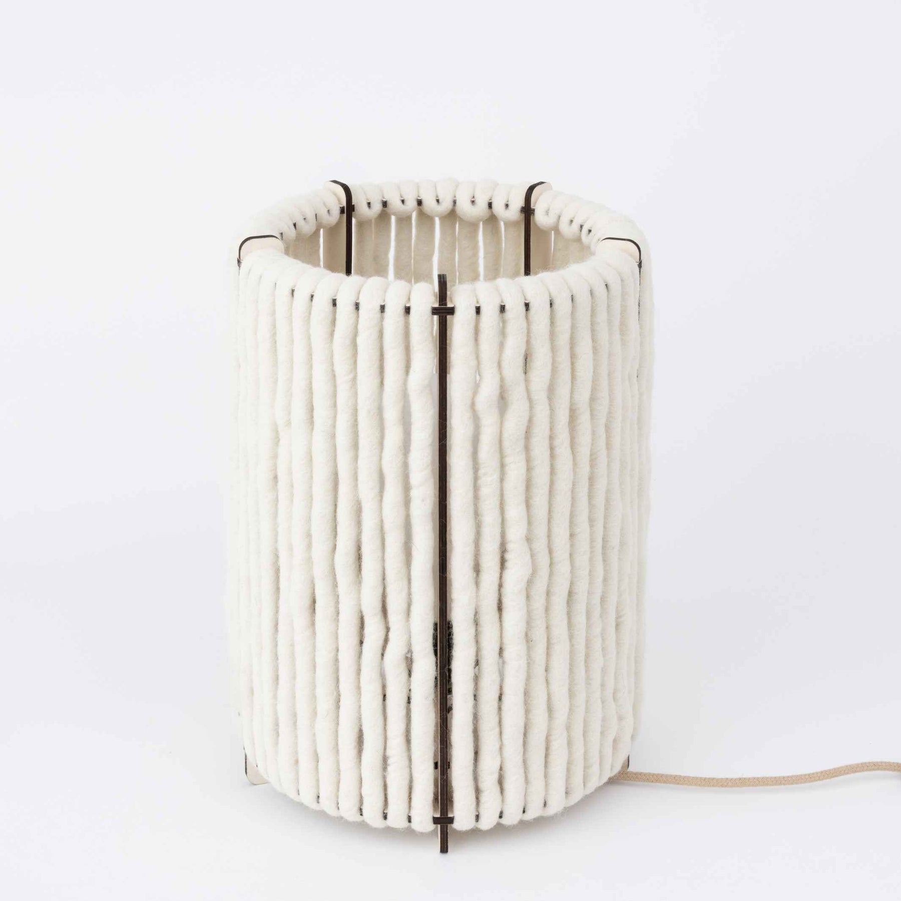 The handmade table and floor lamp made of pure wool and wood from the Tyrolean lighting label ALMUT von Wildheim - a successful combination of minimalist design and alpine tradition.