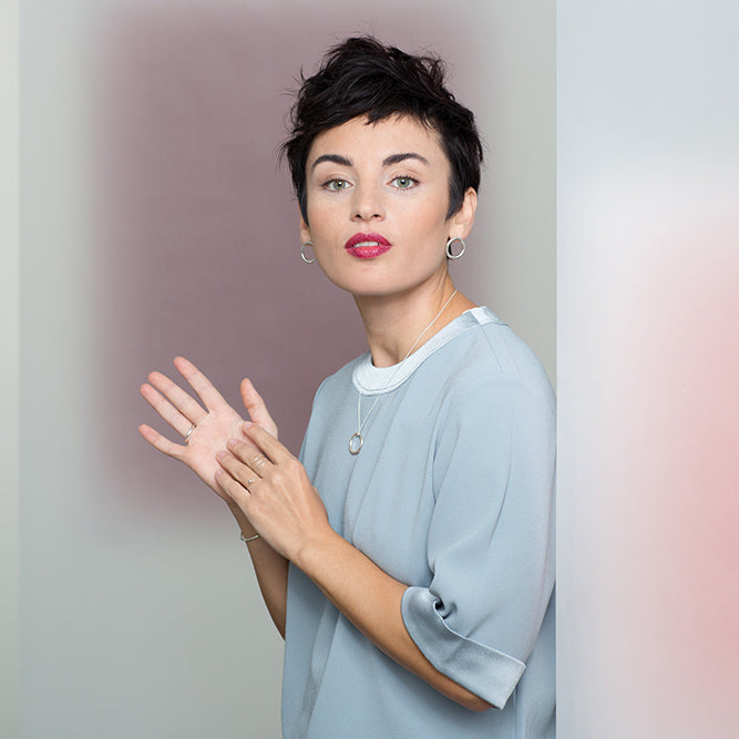 Corresponding to the ring in the collection, the SPIRAL ear stud, available in sizes 10 mm, 20 mm and 30 mm, impresses with its simple and expressive design. The delicate, graphic stud earrings are made from 925 Sterling silver in Germany and hand-polished.