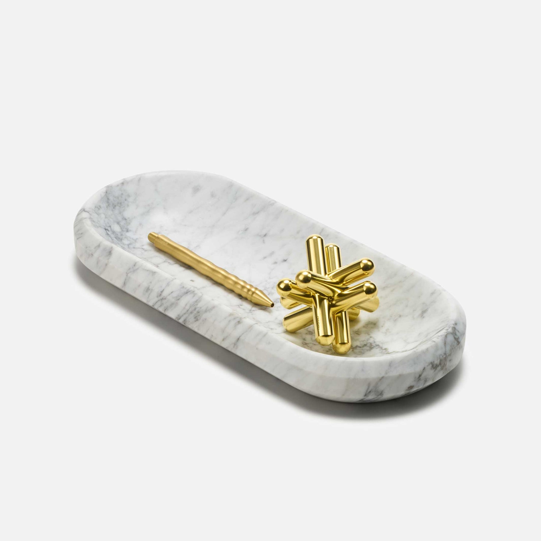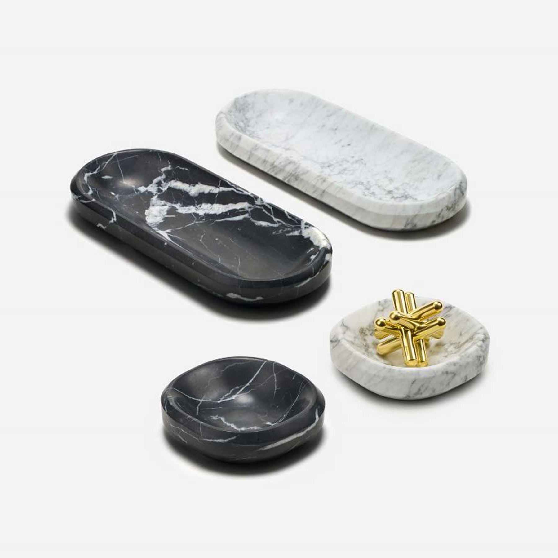After releasing these vessels in Maple, Walnut, and Black Ash in 2022, Craighill sought out a new material that would offer a touch of added splendor without going overboard. They landed on marble. The angular facets of the bowls mixed with the luxurious veining of marble hit the spot.