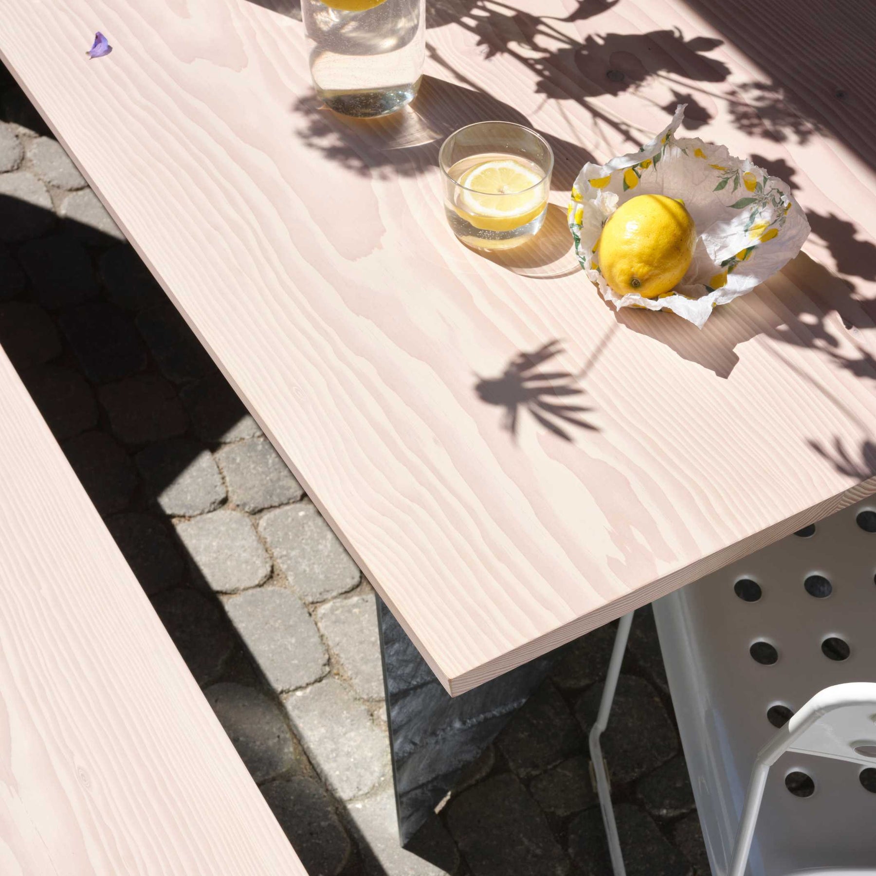 Douglas fir wood is extremely weather-resistant thanks to its high resin content and is often used in timber construction. This also makes the FOLD family made of Douglas fir wood ideal for outdoor use. The white leached and oiled surface gives it a velvety yet robust finish that can be re-treated at any time if necessary.