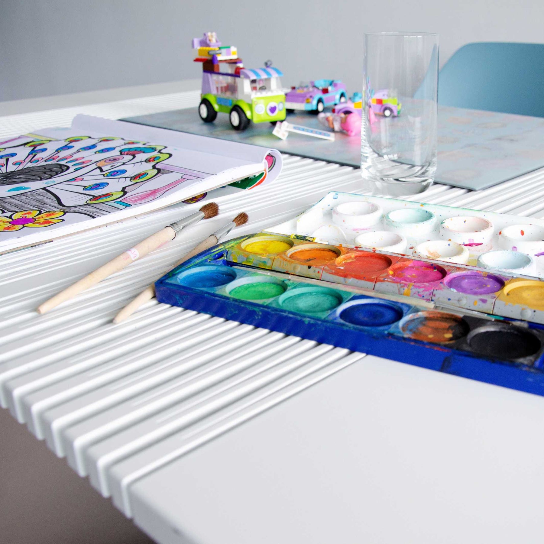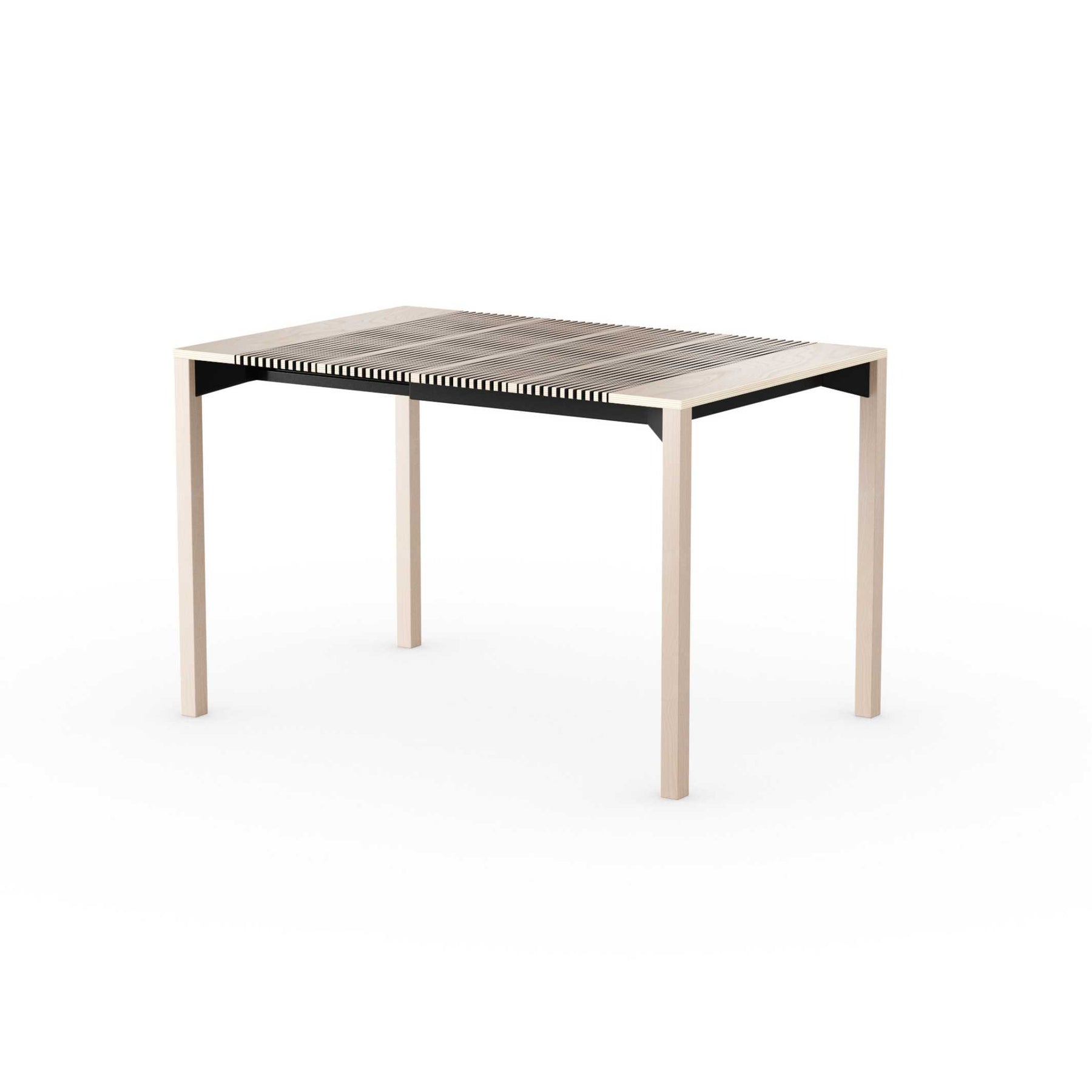 The patented slat design of the iLAIK pull-out table is unique in the world and is created using precisely guided, computer-controlled laser cuts. The founding team came up with this functional principle almost by chance: it is based on playing with a folding rule, which is not only widespread among carpenters. When this is folded up and pulled gently from the side, its individual sections open in a similar way to the slats of the iLAIK extending table.