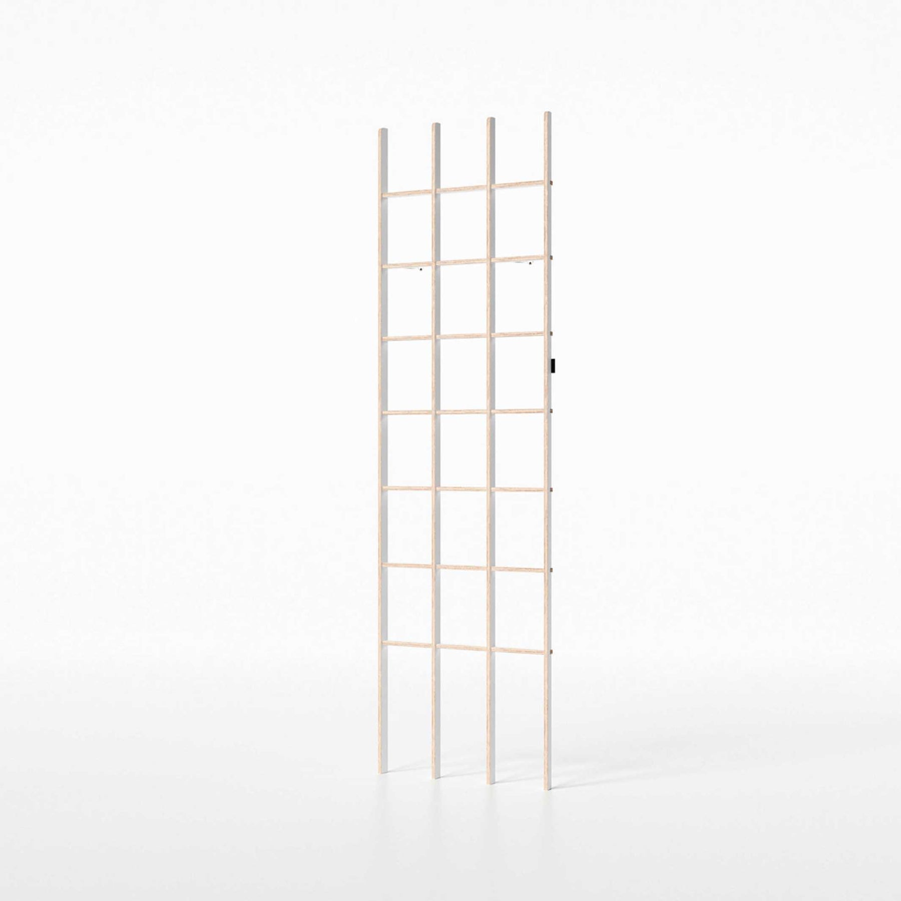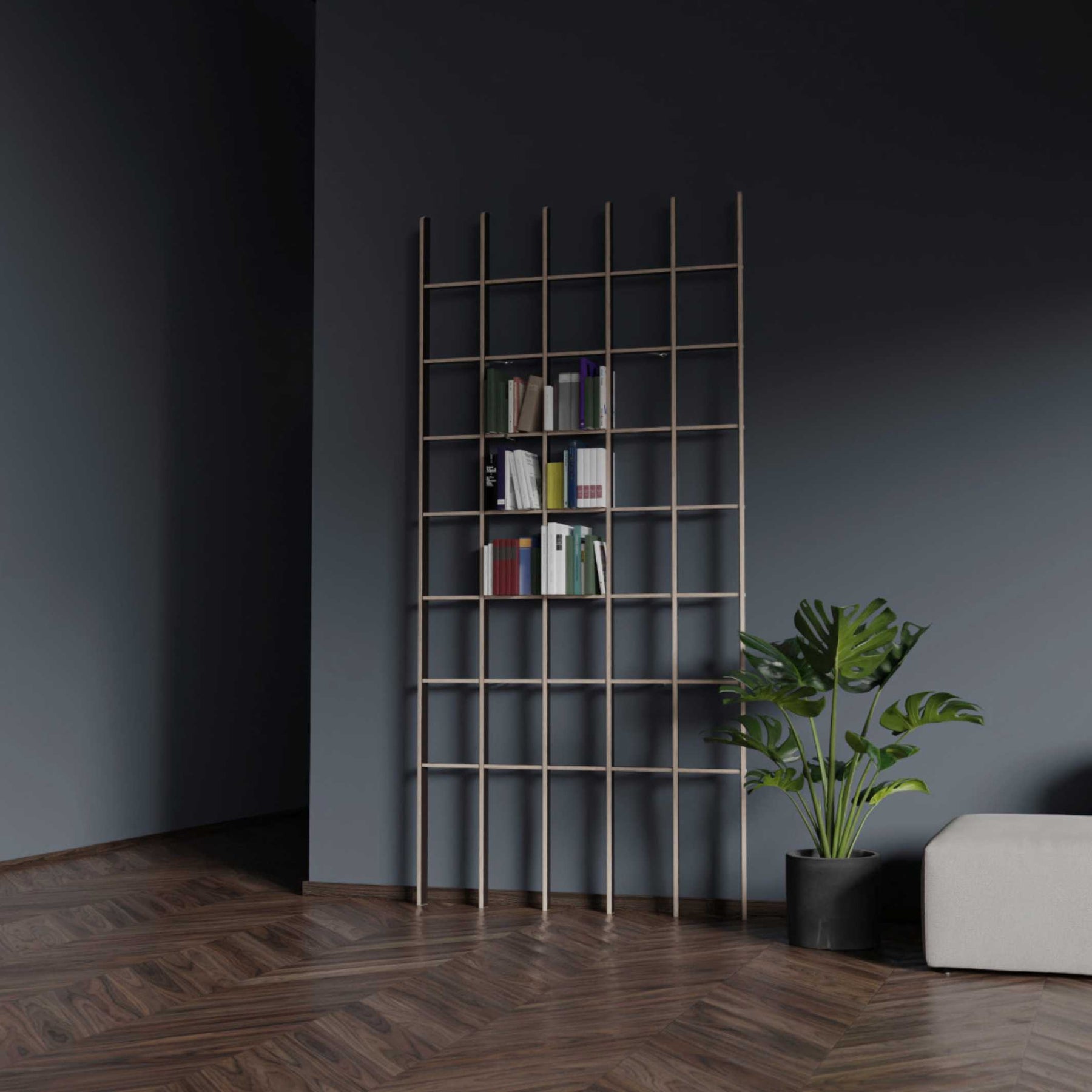 What does it take to keep a book, many books, within easy reach? A lot of creative design work and the courage to go for absolute reduction - as well as a minimum of selected materials, or: an airy grid of 11-ply birch plywood placed in front of the wall!