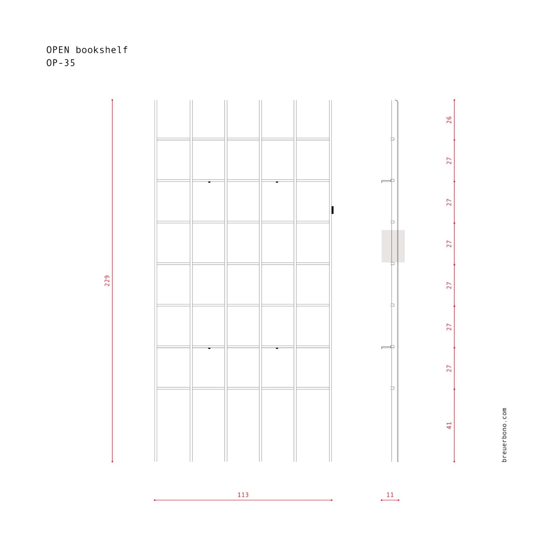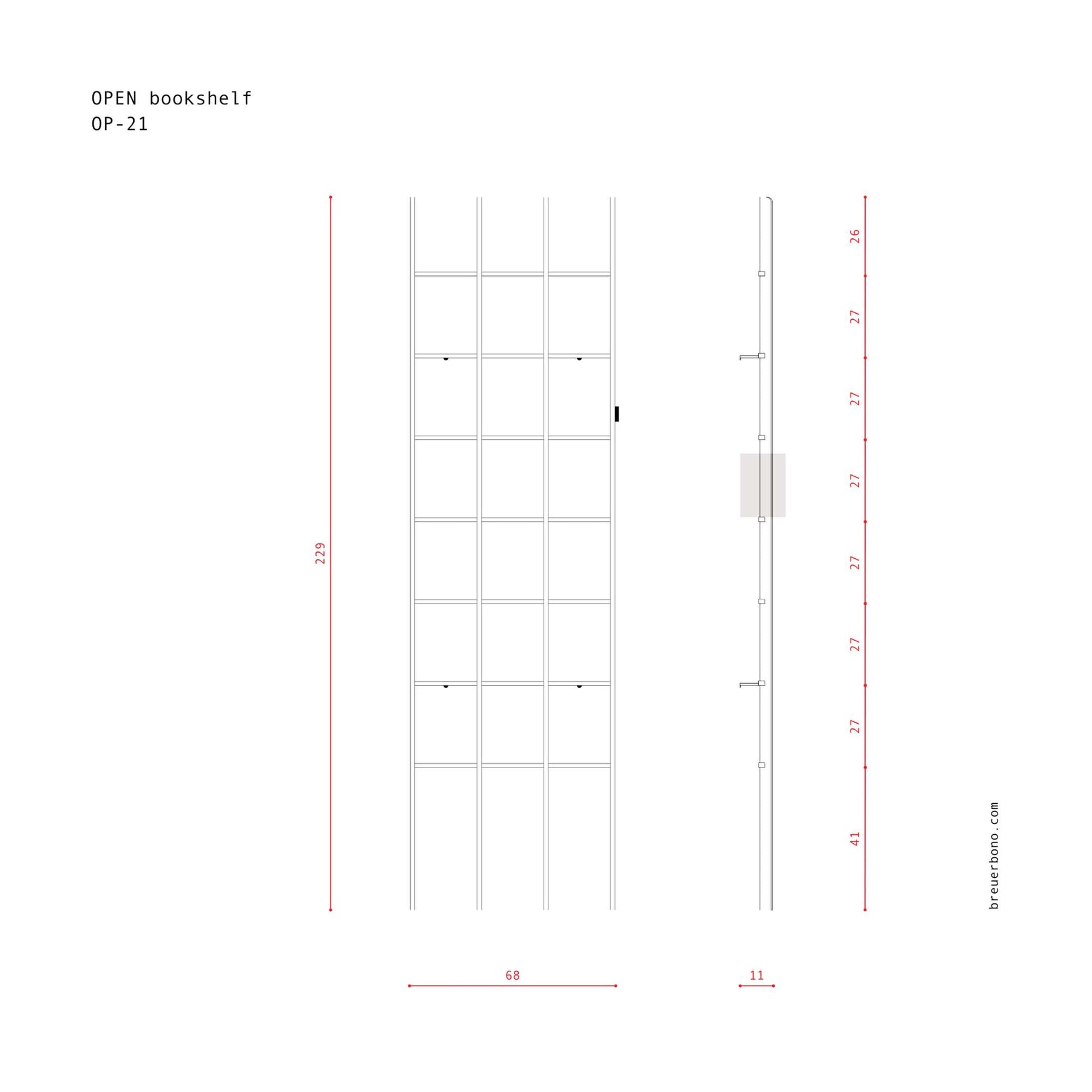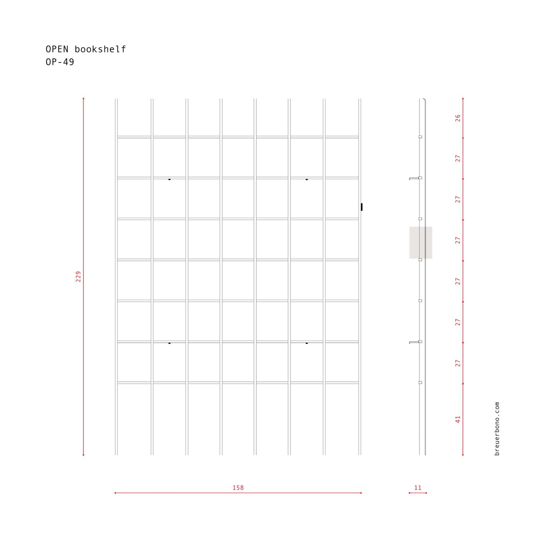 Books can be easily placed in the grid designed in Graz. They don't tip over because they lean and they can be elegantly removed and rearranged: Simply hook your index finger onto the top of the spine and tilt the book forward. Empty sections of the book platform do not interfere, but cast sculptural shadows.