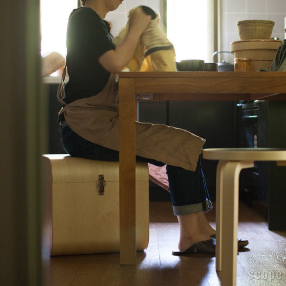 Storage box with stool function and hinged lid. Stackability and the option to arrange them in rows create a variety of storage options.