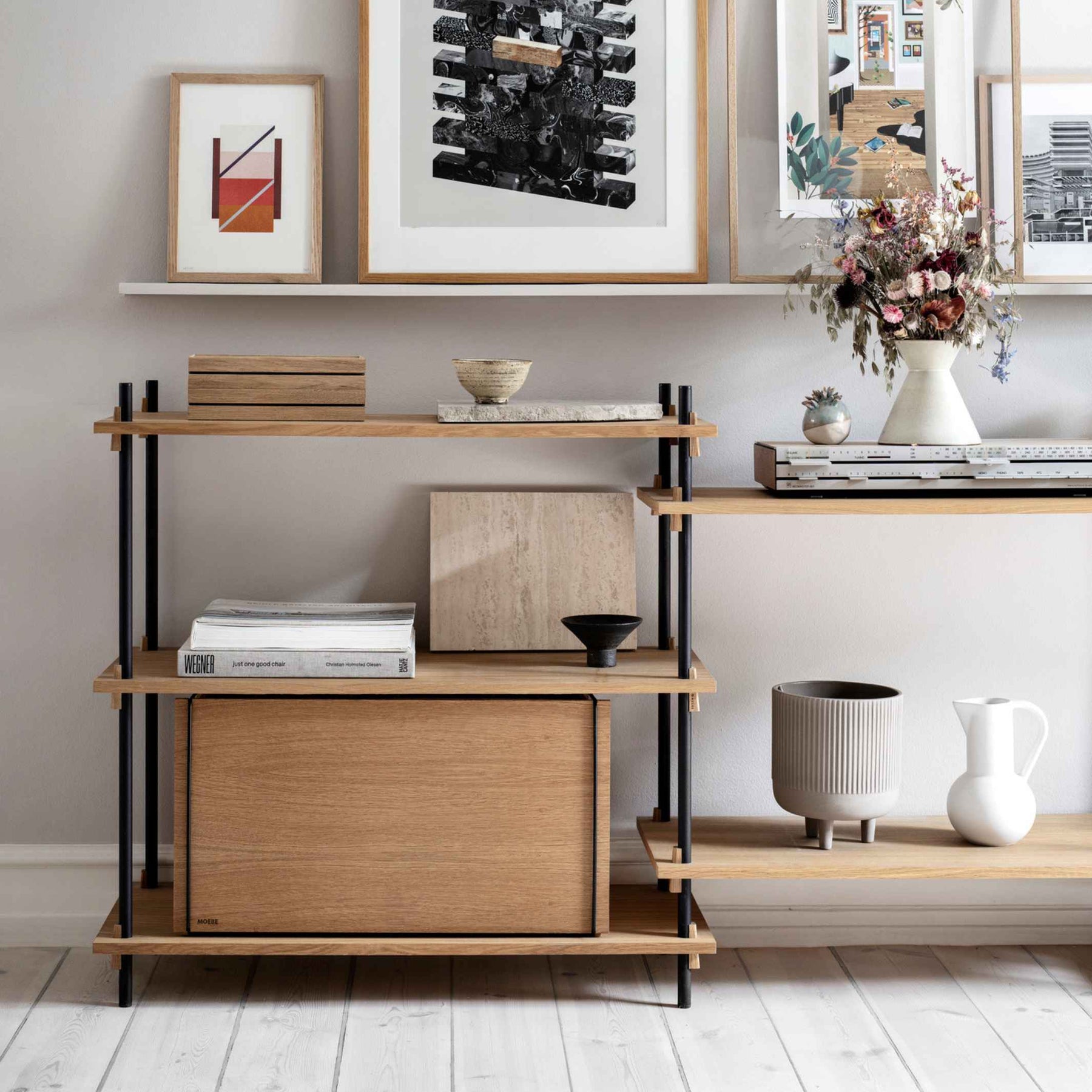 The MOEBE shelving system gives you complete freedom to build your own piece of furniture and adapt it to your exact needs. The system can be built as high and as long as you want, it can be built around corners - your individual solution for your individual lifestyle.