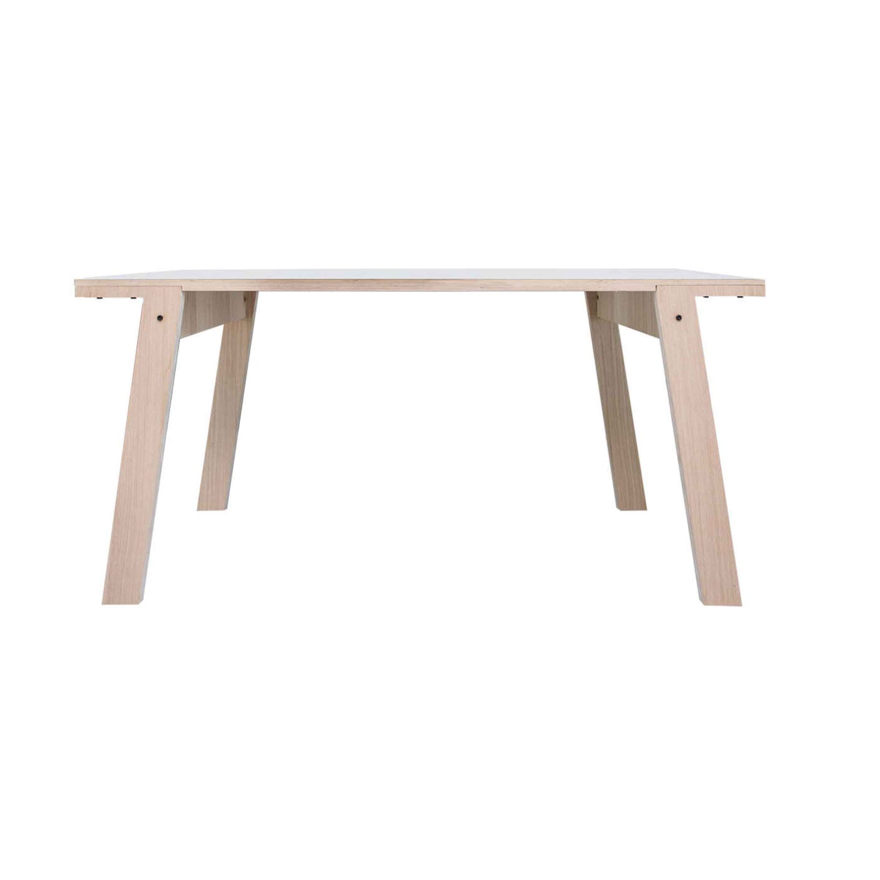 The table top and legs are made of very sturdy birch plywood. Two-year guarantee. Suitable for indoor use only. Requires assembly, instructions and fixtures included. Natural wood surfaces treated with oil finish. This finish seals the pores of the wood, improves the natural structure and forms a water-repellent protection against daily wear and tear. Well protected against water, juices, wine, milk, ... Simply clean it with a wet towel.