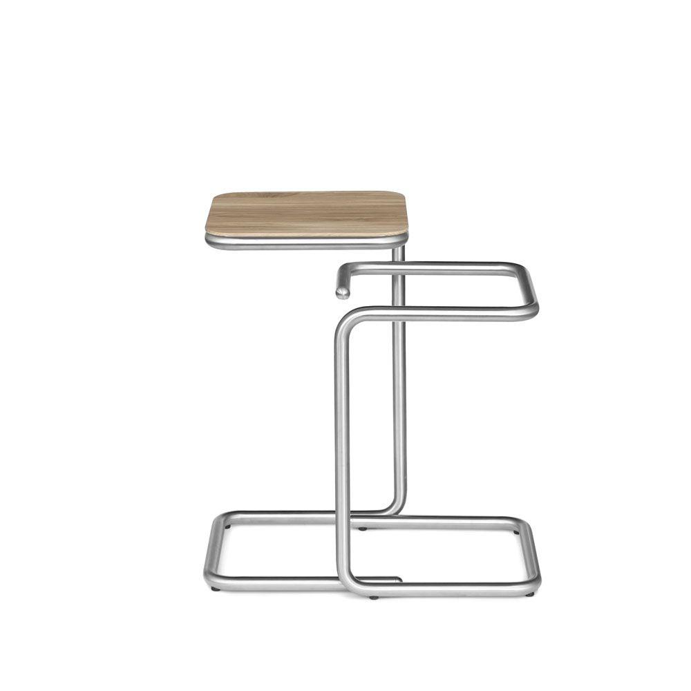 A tubular steel frame serves as a holder for a tray made of solid wood. The trays lie loosely on the frame and can therefore also be used for transport and serving.