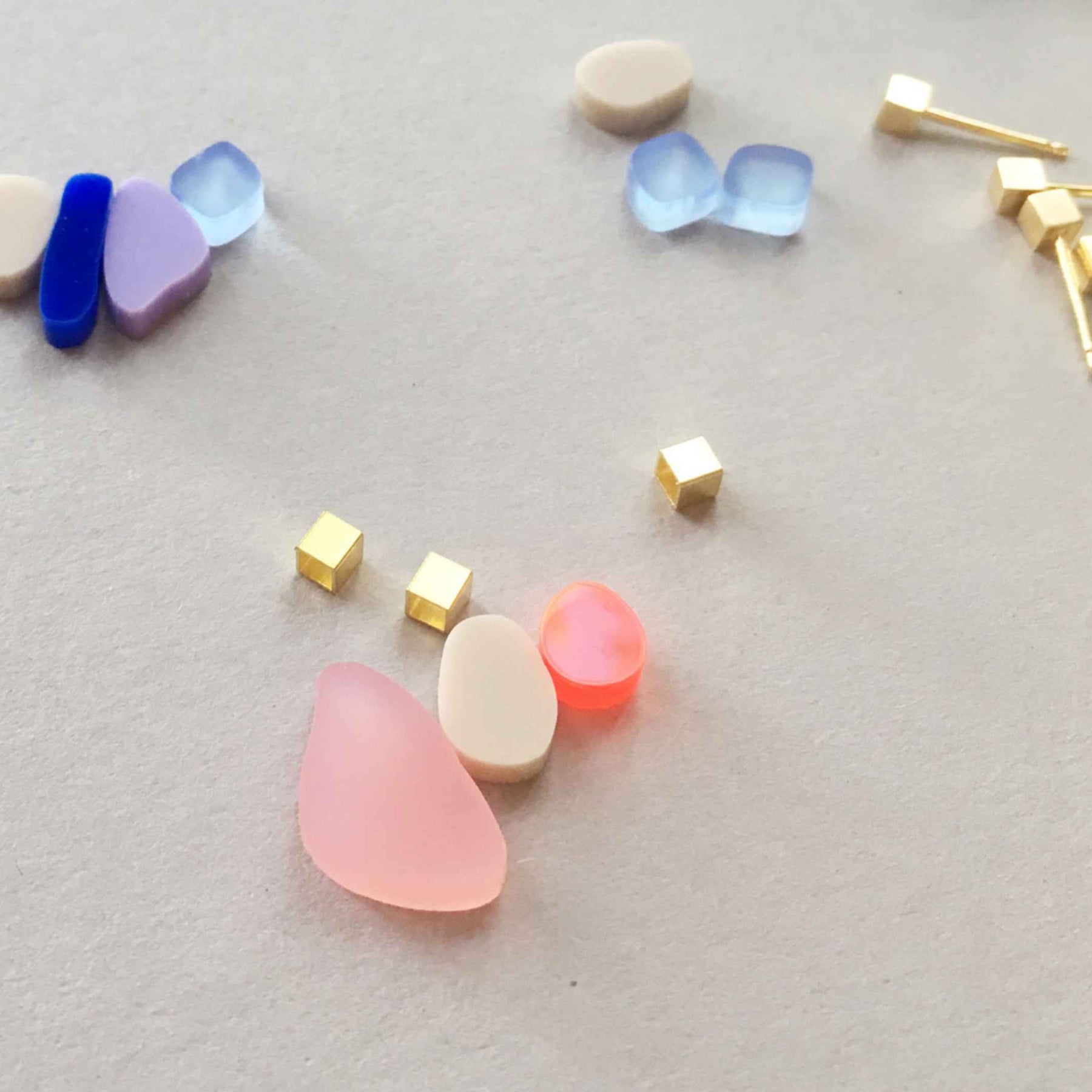 This stylish necklace is made from high-quality gold-plated brass, complemented by a modern acrylic pendant and an elegant gold-plated brass cube.