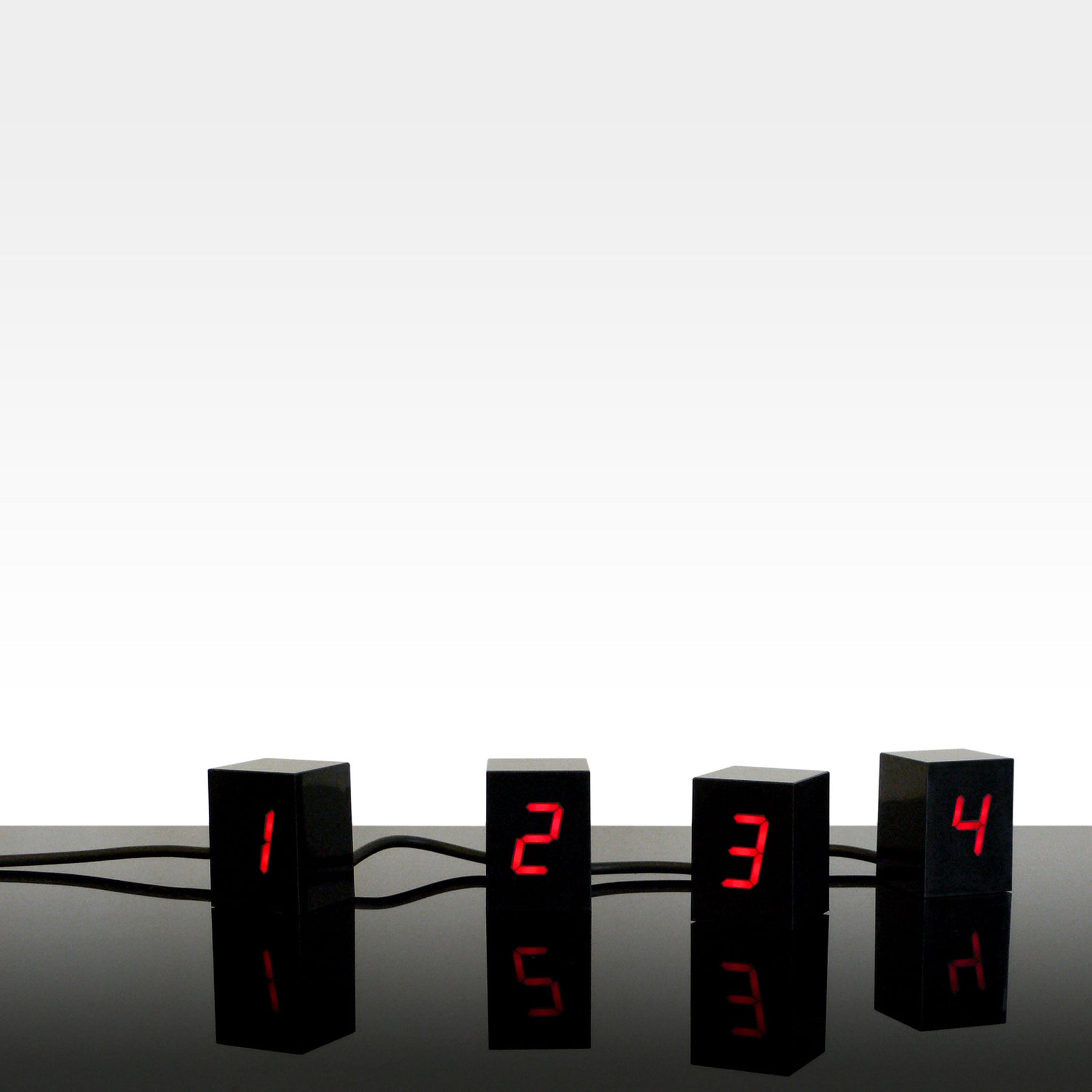 Each block of the clock measures 5 x 4 x 4 cm, is black and has red illuminated LED digits.