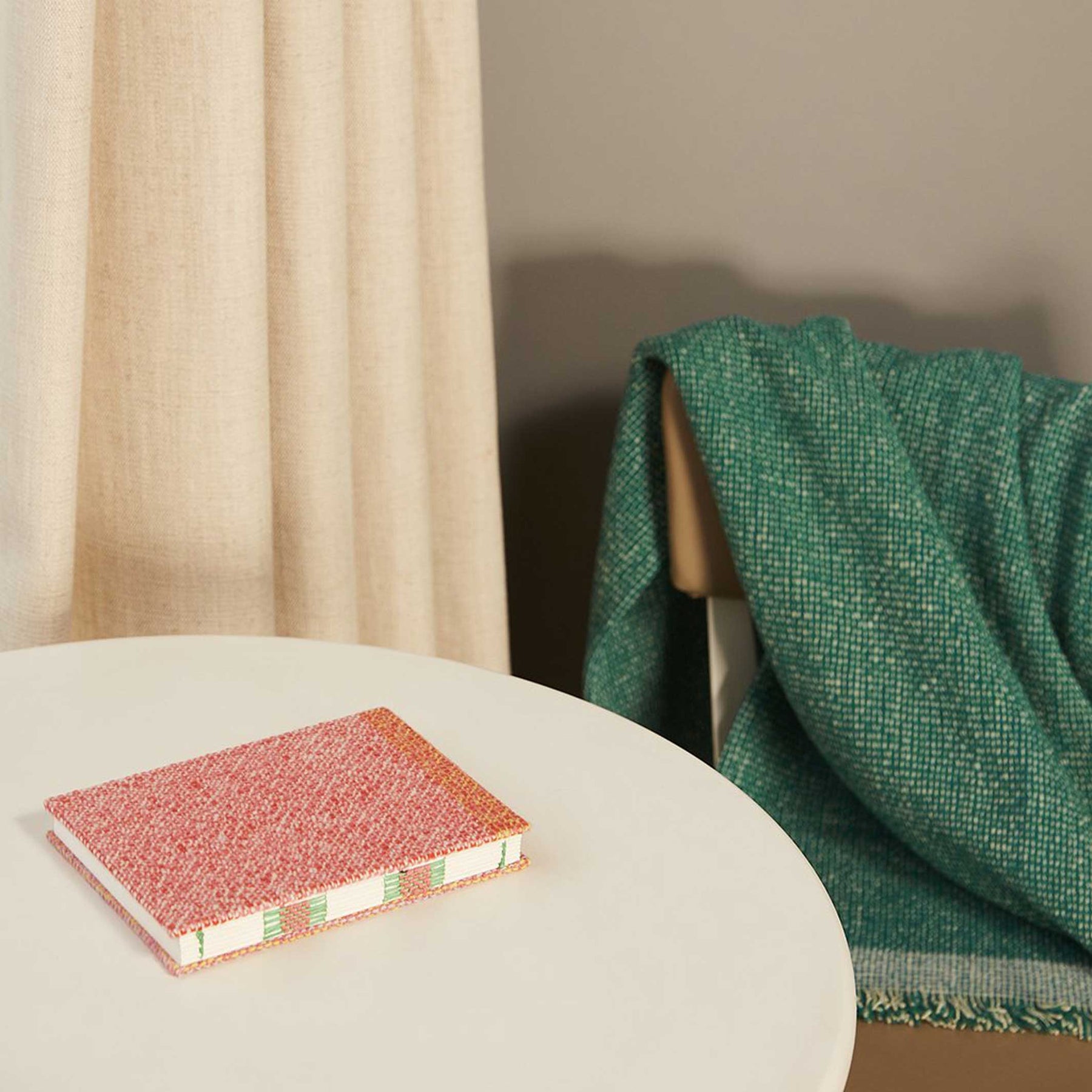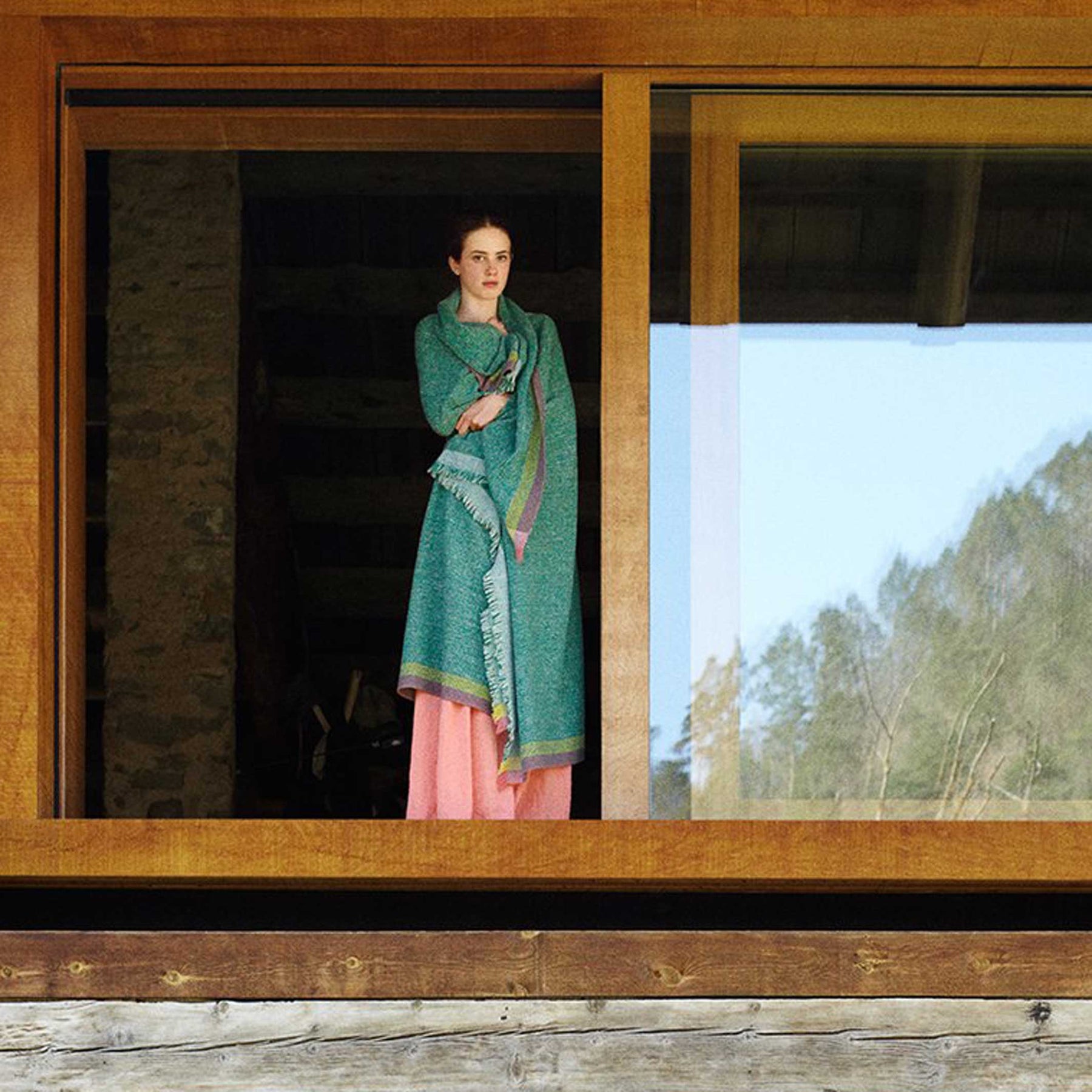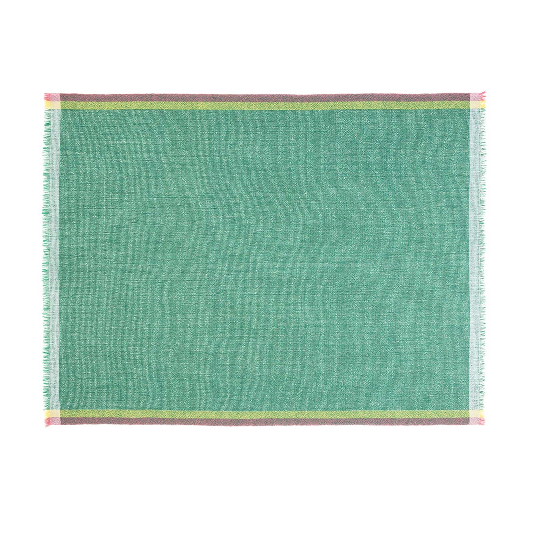 Die grüne Wolldecke Intuition bringt die einzigartigen Qualitäten von handgewebten Stoffen zum Ausdruck. In diesem Handwerk werden Zeit und Raum miteinander verwoben, um außergewöhnliche Stoffe in den Händen erfahrener Handwerker zu produzieren.