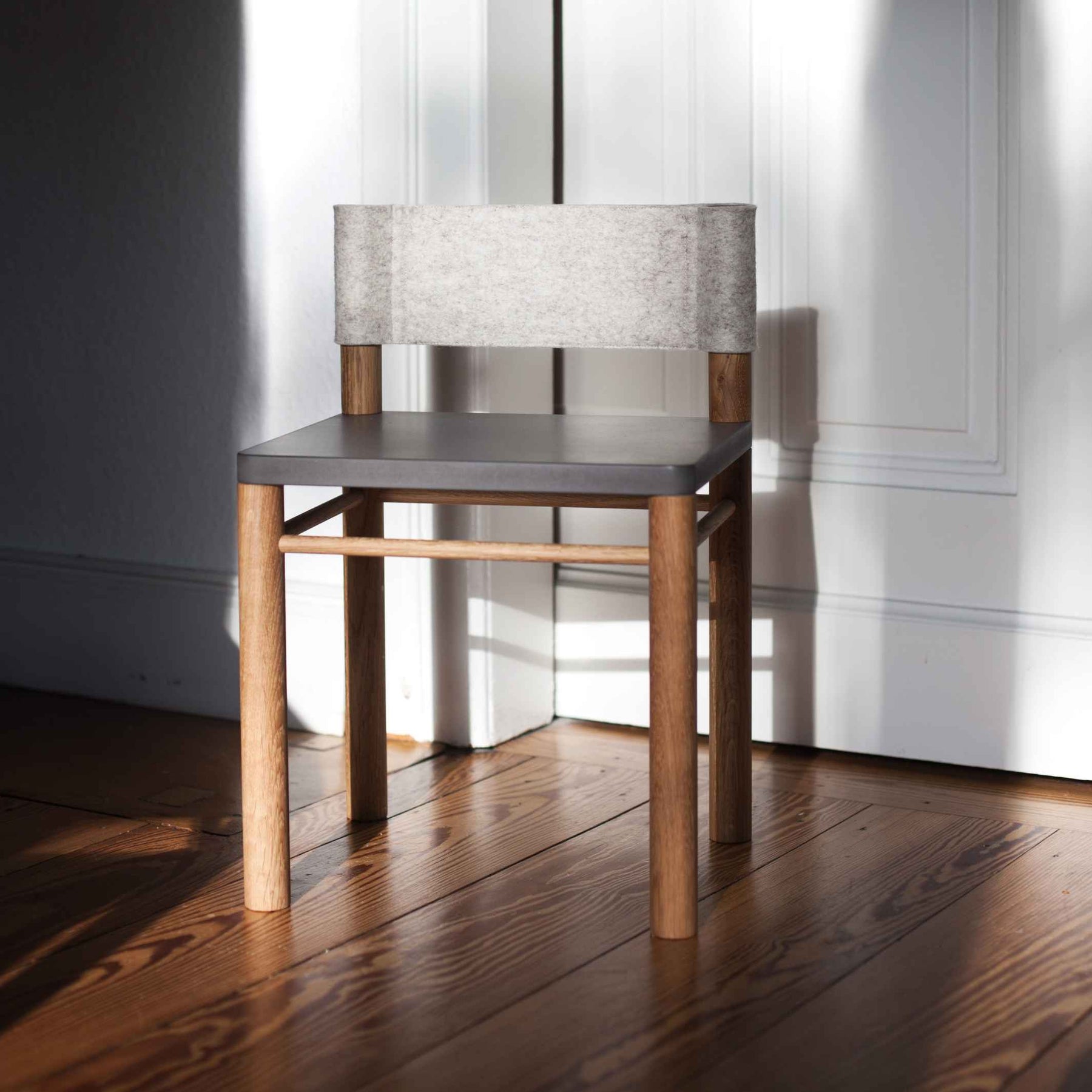 Material FSC-zertifiziertes Massiv-Eichenholz | FSC-zertifiziertes Valchromat (mit organischen Farbstoffen durchgefärbte Holzfaserplatte) | Filz (100% Wolle)