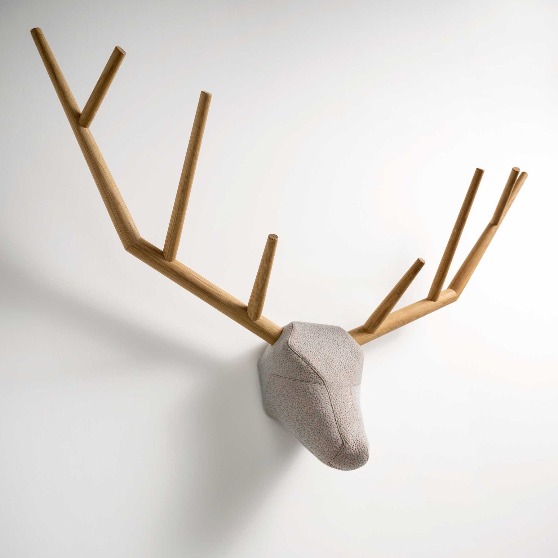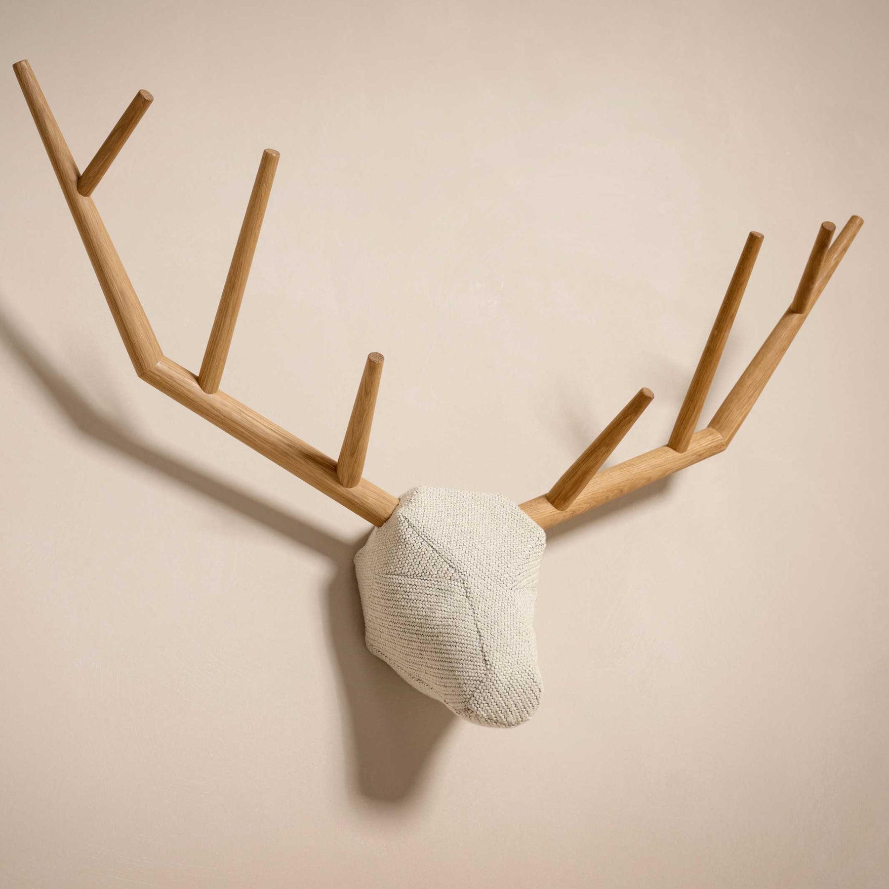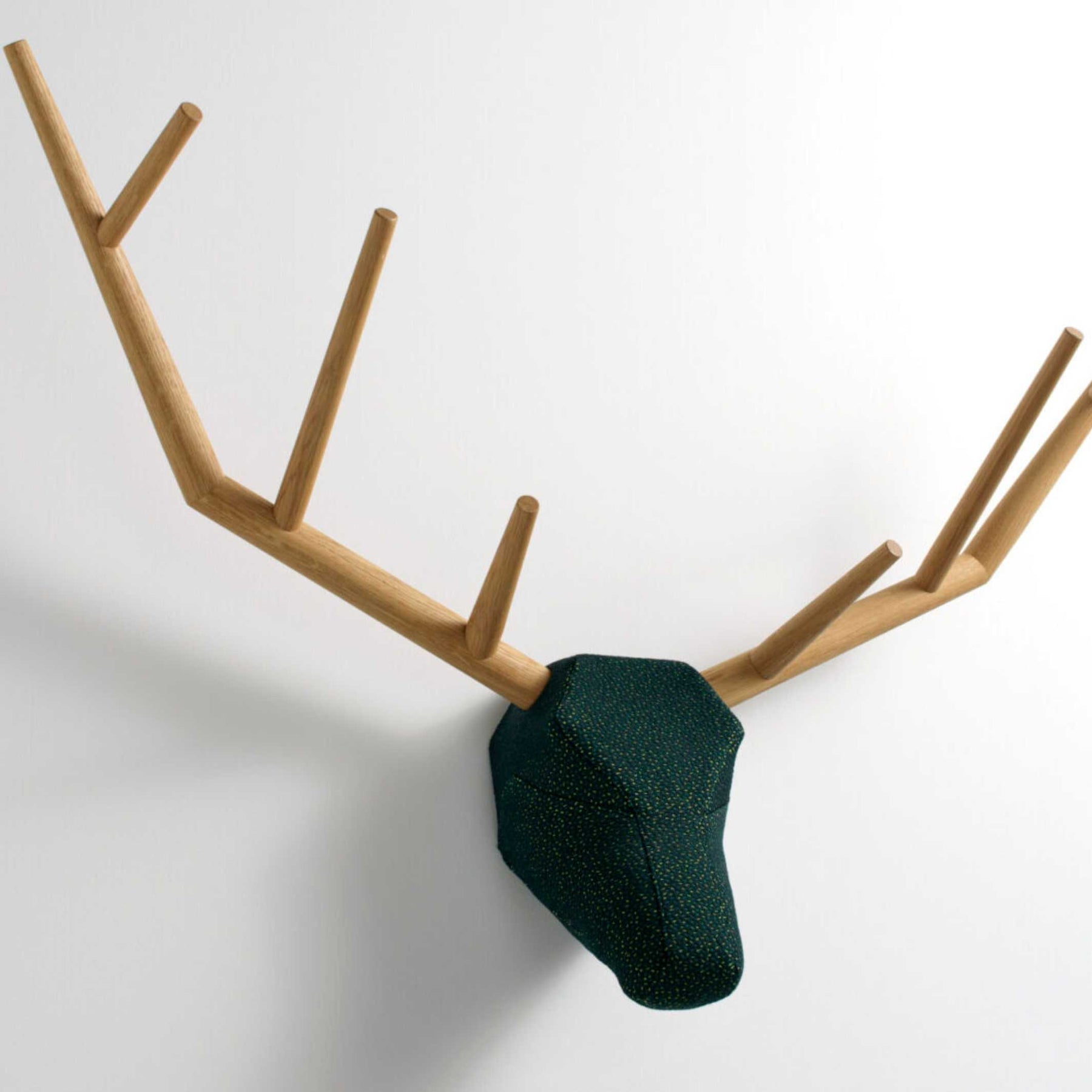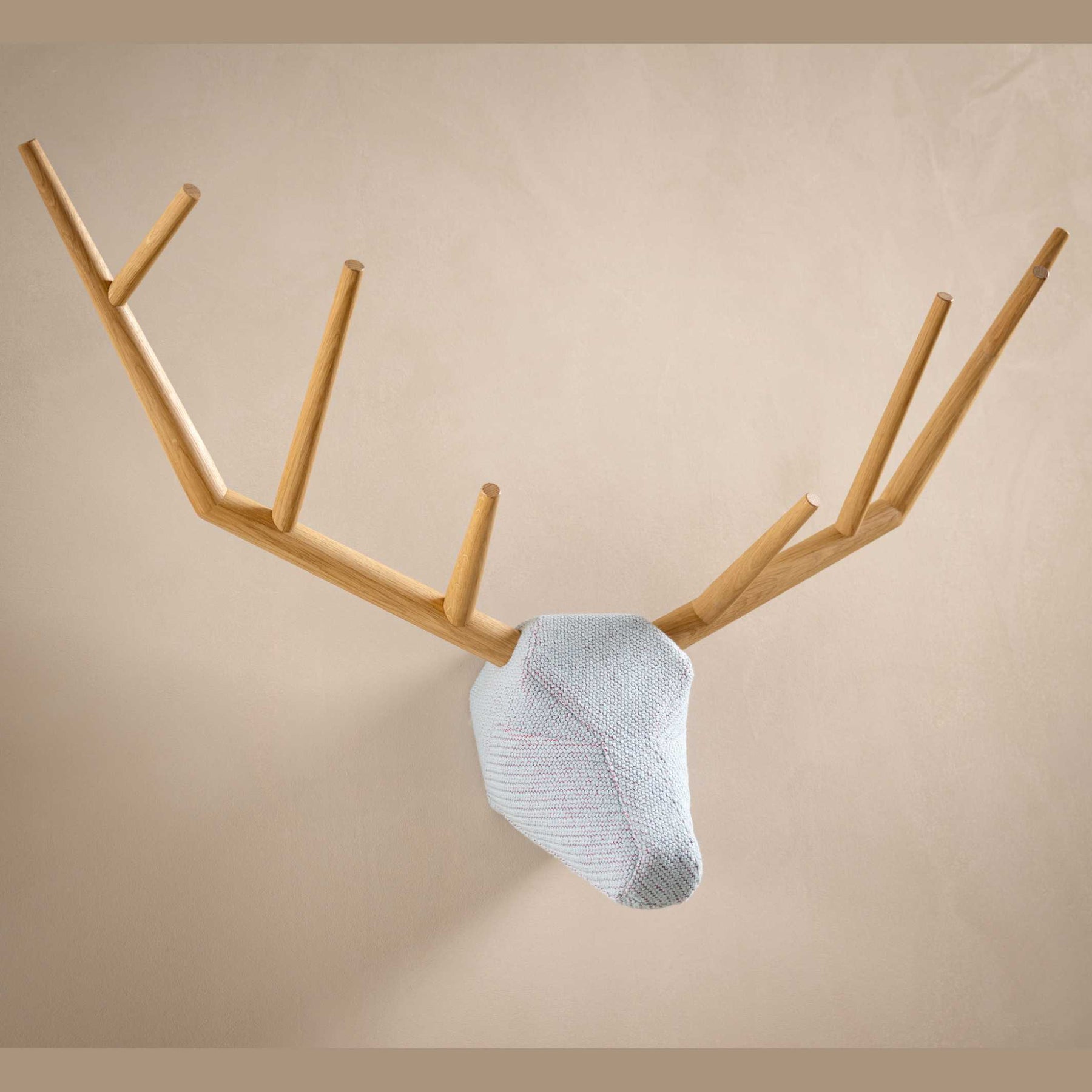 Horridoh und Waidmanns Heil: Ohne vorher auf einem Hochsitz zu frieren und ohne auch nur einen einzigen Schuss abzufeuern und Dich anschließend mit einem schlechten Gewissen zu plagen, hängst Du Dir mit YY eine prächtige Trophäe an die Wand. Als dekoratives Element oder praktische Garderobe überblickt er ruhig und wohlwollend den Raum. Sein imposantes Geweih geht harmonisch in den weichen, samtigen Kopf über.